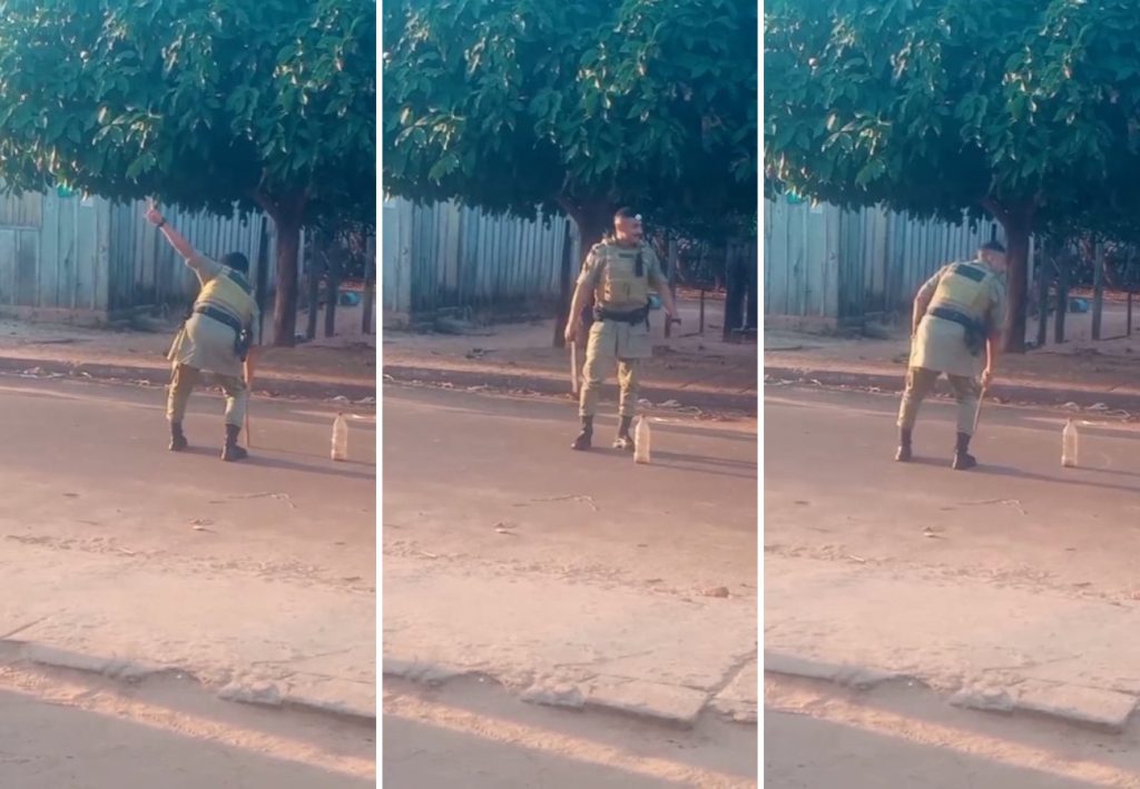 Vídeo mostra PM brincando de bet com crianças na rua em Aranás