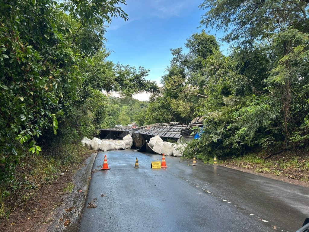 Caminhão fica atravessado em rodovia após acidente grave com morte; trânsito ficou interditado